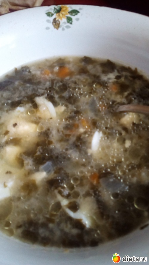 -Щавелевые щи с яйцом по-болгарски(без картошки, с рисом).