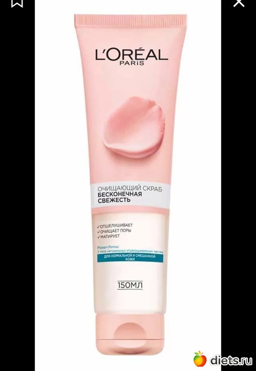 Я еще ни разу не писала первое сообщение в группе Но, мне так понравилась сама идея, т.к. часто стоишь в магазине, нужно что-то прикупить (дома закончилось) и хочется чего-то новенького. Вот у меня закончился скраб для тела. Я им была очень довольна, но, как понимаю, эту серию перестали выпускать "Скраб для лица от L’Oreal "Бесконечная свежесть"...
