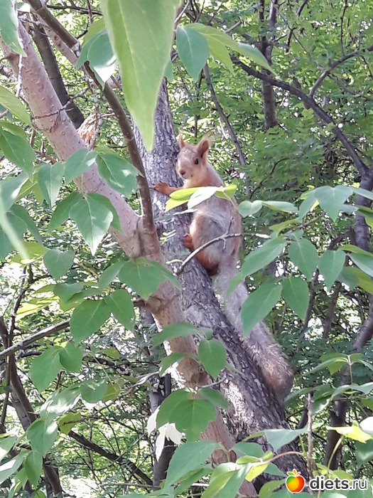 Ей было жарко, но за семечки или печеньки она бы слезла с дерева, но у меня ничего с собой не было. Т.к. июнь был холодным, то грибы вот только полезли, видела, что некоторые отдыхающие чего-то там даже насобирали, земляника есть, но только цветёт, из-за чего я привезла домой бешеный дерматит на своих руках. Всё, что собирала в прошлом году, только начинает зреть: вишня, малина, костяника...