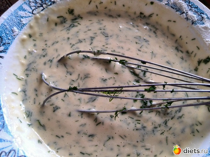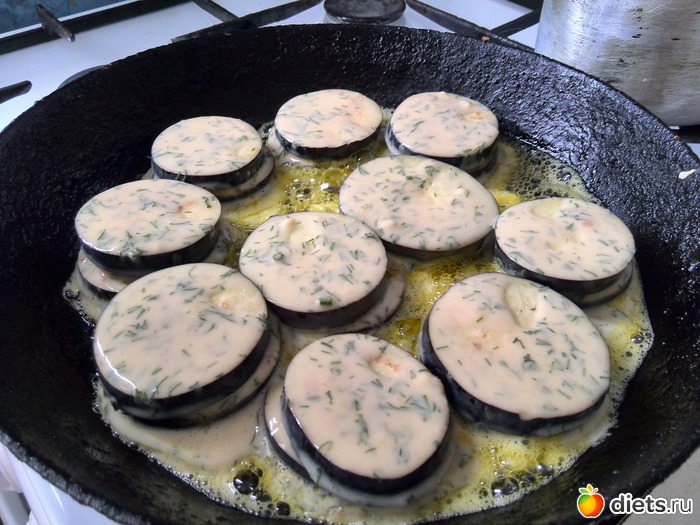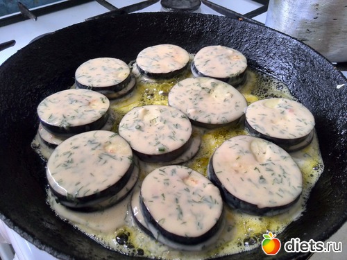 Затем, обмакиваем в кляре и обжариваем с двух сторон на сковороде