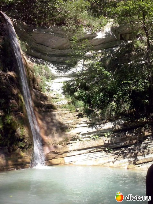 Провела испытание над собой. Полный "ТОЧНЯК". После 1, 5 часового путешествия к водопаду по камням и булыжникам горного ущелья усталости накопилось. После купания во всем трёх чашах усталость как рукой сняло...
