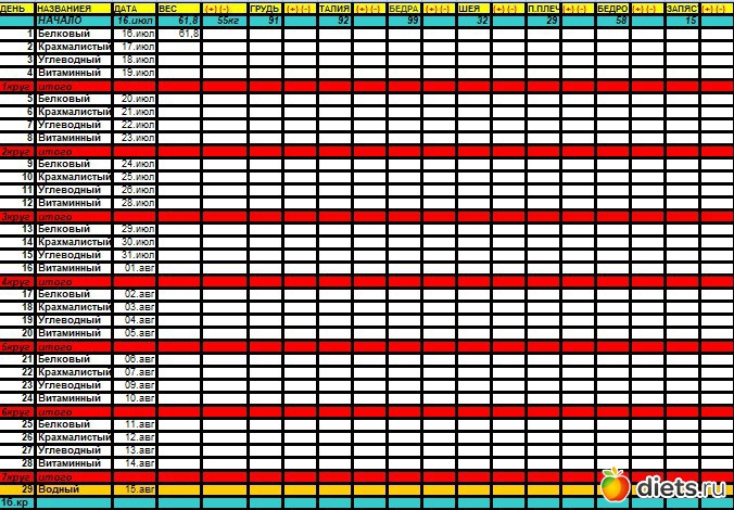 так что решила заново пройти и коктейли убрала мне здеся больше нравится пища домашняя темболея я за два месяца уже к времяни приема пище уже привыкла мне легко просто меня разд рожает что у меня вес стоит вроди все как обычно думола что немного отдахнуи вес в низ пойдет а он встал теперь 61.8 как видешь 1 кг прибавила когда бросила диету