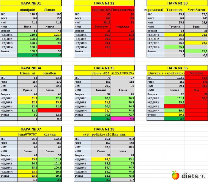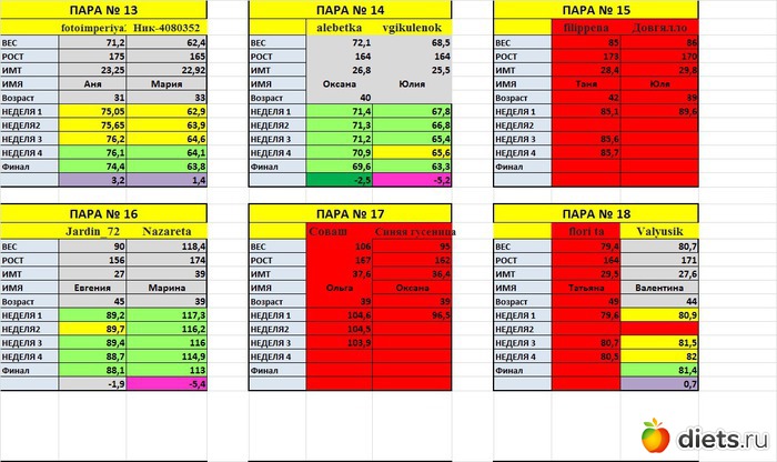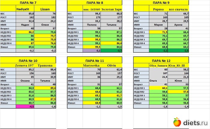 ІІ место - olushka0112, tatty1976 (по -5,5 кг)