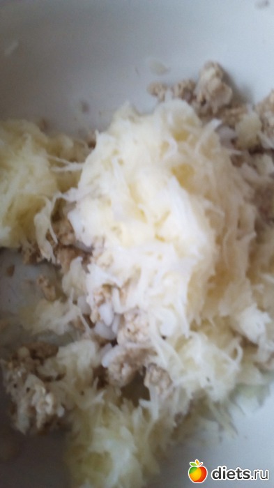 Но иногда их делали со свежей картошкой. Картофель-сырой, трем его на мелкой терке.