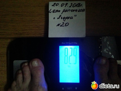 1. Весы должны показать 80,5, не больше - Есть!!! Даже ещё минус 100 г. Но это заслуга вчерашнего разгрузочного дня, я так полагаю!!!