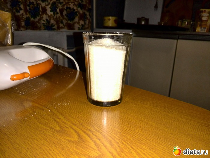Добавляем стакан муки, полный (у меня граненый с ободком, не просеянная)