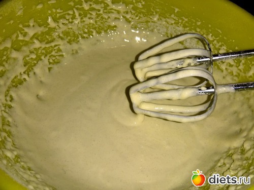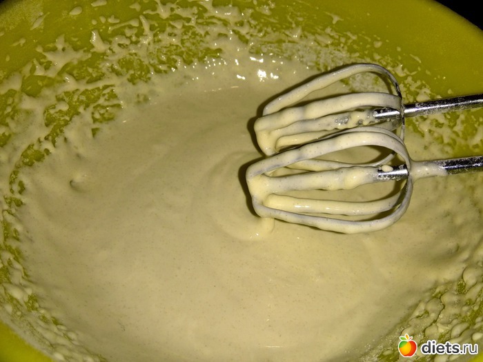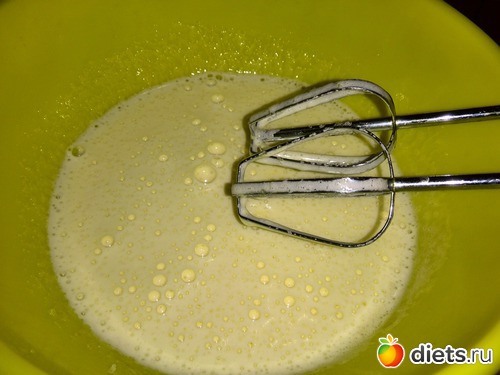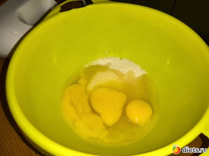 Взбиваем яйца с сахаром, я взбивала миксером, поэтому "перевзбивала" немного, зато печенье получилось безумно нежное