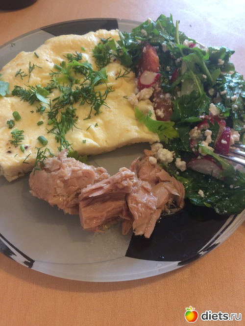 У меня вот тут омлет ,тунец в с/с и овощной салат заправленный творогом 5 %