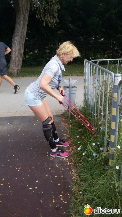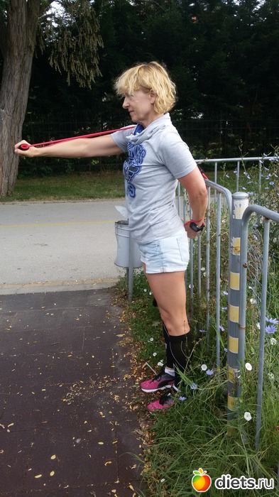 К чему это я? Не для "хвалите меня, хвалите!" Делюсь вариантами нагрузок в отпуске. Резинки в чемодане практически не занимают места, палки специально купила телескопические, чтобы поместились в багаж. Кроссовки в отпуске - самая востребованная обувь, а специальной спортивной одежды не нужно вообще.