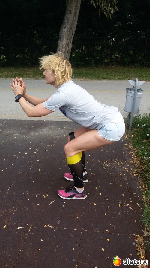 Для нагрузки на трицепс отжимаюсь от скамейки/от спинки скамейки или от дерева.