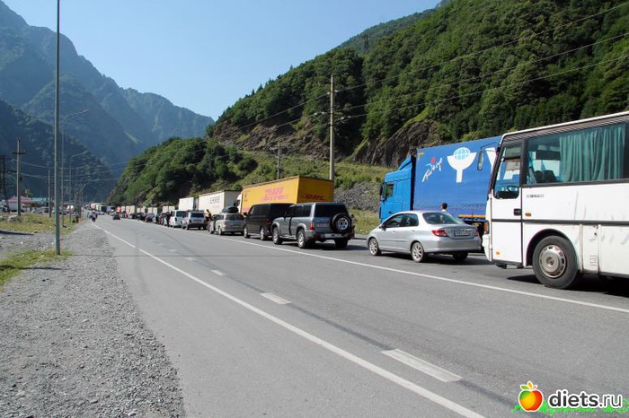 К слову сказать, российские пограничники (осетинского происхождения по всей видимости) наводили порядок в очереди добросовестно, блокировав "встречку" и не позволяя джигитам пролезть без очереди к вожделенному КПП.
