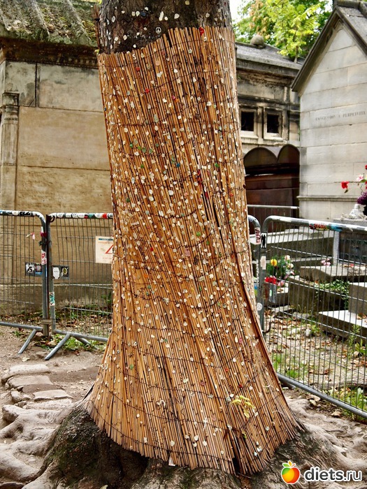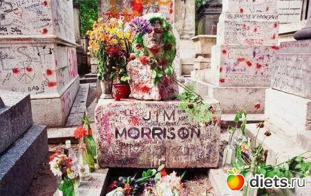 "Могила Джима стала самым настоящим местом культового поклонения фанатов. Из чувства огромной любви к своему кумиру поклонники пишут строчки из песен и признания не только на надгробии Моррисона, но и на соседних могилах." (ист. fb.ru)