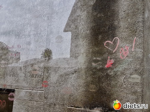Просьбы о помощи и пожелания писали губной помадой прямо на могильном камне, поэтому надгробие огородили стеклом.