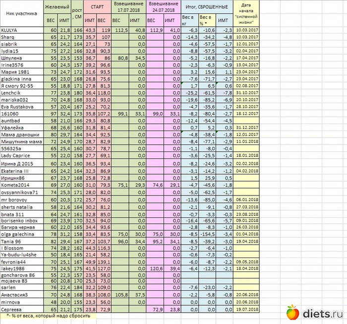 Ира, привет! Про таблицу помнила, но совсем не было времени сегодня записать свой вес. Он все тот же.