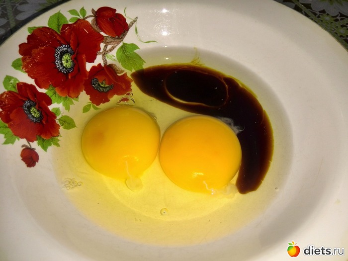 Омлет с соевым соусом (не стала готовить рулетиком, и так получается вкусно, а времени занимает меньше)