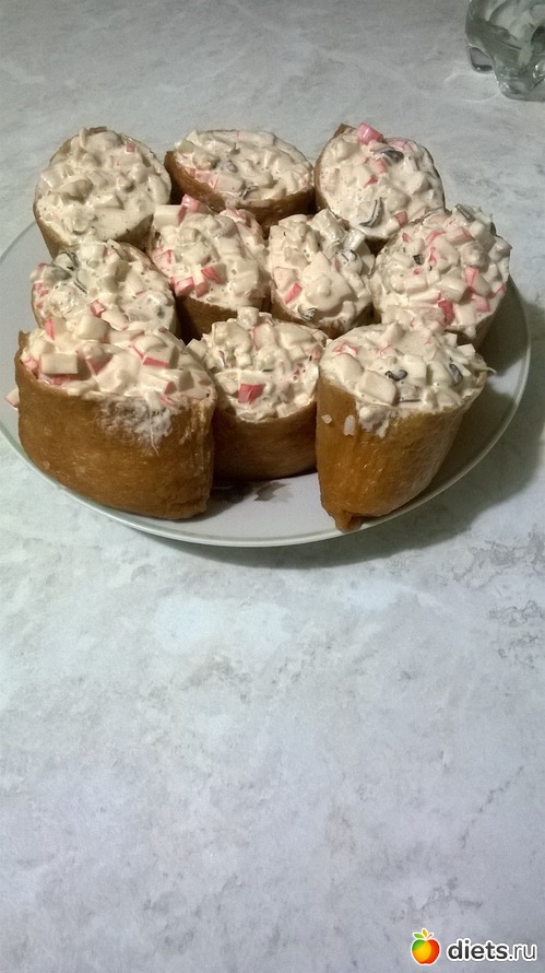 Начинка была из крабовых палочек, свежего огурчика с грядки, плавленных сыров и икры.