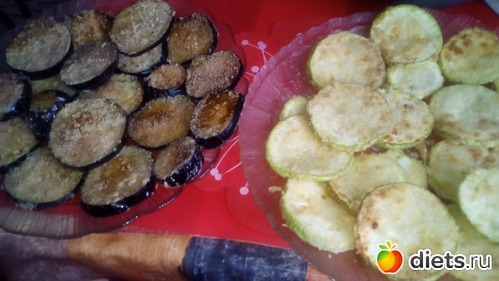 Можно запечь-пожарить кабачки-баклажаны, предварительно обваляв их в муке, или панировке, или отрубях(