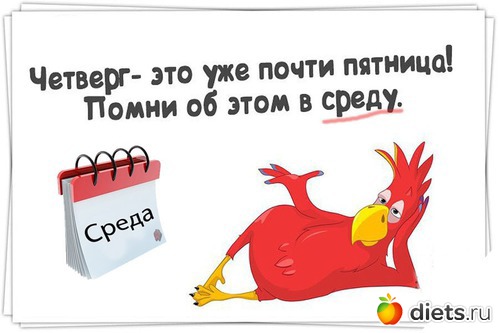 Ну и в третьих конец недели это дни свободные от работы значит можно отдохнуть не только от диеты но и от работы.