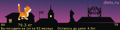 Поставила себе промежуточную цель: весить 75 кг, а в идеале к началу отпуска (3 сентября) хотела бы весить 70 кг. Создала линеечку, сегодня с удовольствием отметила первый результат!