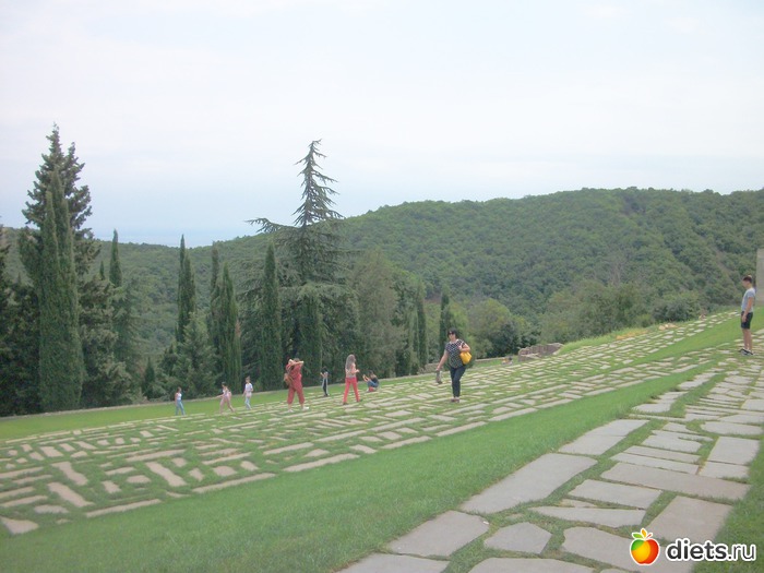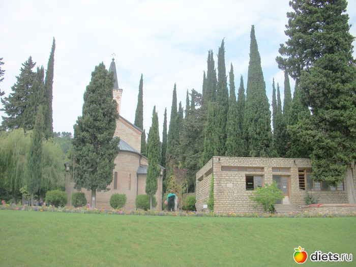 Хочу сказать вам, что это очень красивое место, невероятно ухоженное. Оно занимает большую площадь, на которой находятся церковные постройки, жилища монашек, хозяйственный комплекс, цветники, виноградники, огород и, конечно же, останки просветительницы Грузии святой равноапостольной Нины.