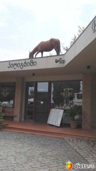 Лошадь забралась на крышу кафе и чего-то там нашла для себя. И никто ее за это не ругает и не гонит оттуда.