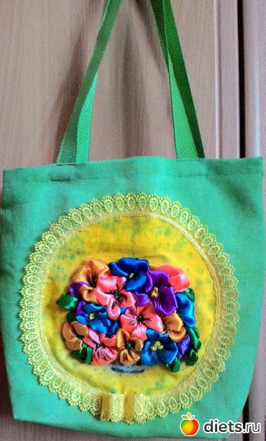 Приветик, Марина! Сумочка, конечно, не шедевр, но с такой сумкой ходить за хлебом моей сестричке будет приятней. Она высокая и специально для нее я сделала ручки подлиннее и при желании ее можно надеть на плечо.Надеюсь, ей понравится.