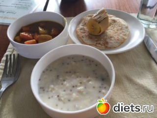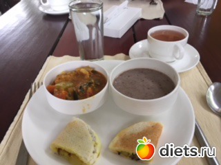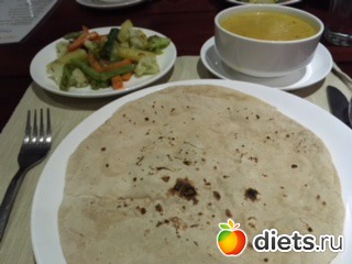 Один раз мы сходили. Ничего особенного, простенько, но вкусненько. Чашка супа, 2 лепешки чапати и блюдечко овощей на гриле. Ну и чай