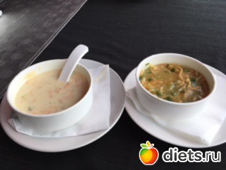 А вот сам супчик, слева. Справа тоже вкусный, со сложным названием, но островат