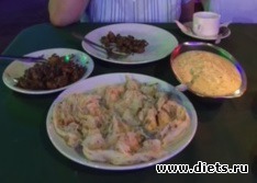 Как я уже писала, 5 дней мы не завтракали (ну и в день прилета тоже) из-за приема масла, поэтому договорились, что один раз поужинаем бесплатно (хотя могли бы и больше накормить)