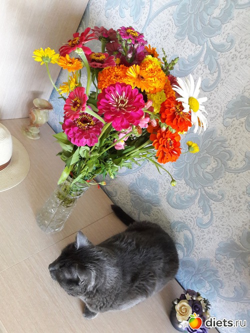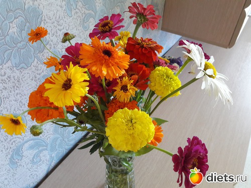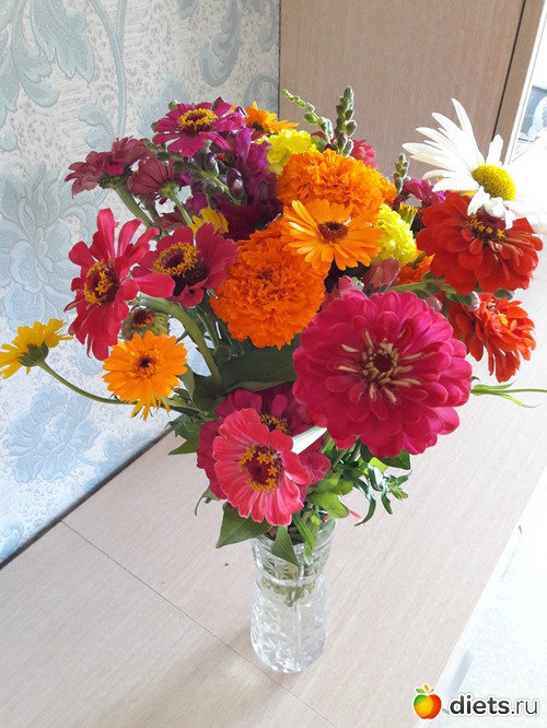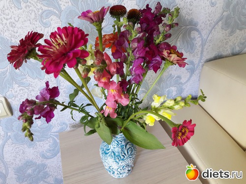 Только я вчера подумала, а не попросить бы у снохи пару цветочков из её богатого цветника себе домой срезать? Только погоревала, что из-за этого кризиса давно мне муж цветочков не дарил. И сегодня вот оно что: