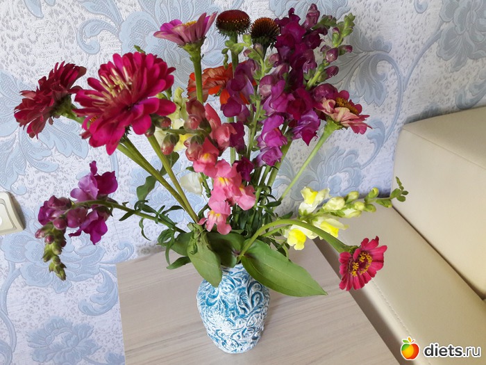 Букет был такой большой, что еле запихала его в вазу, два купил