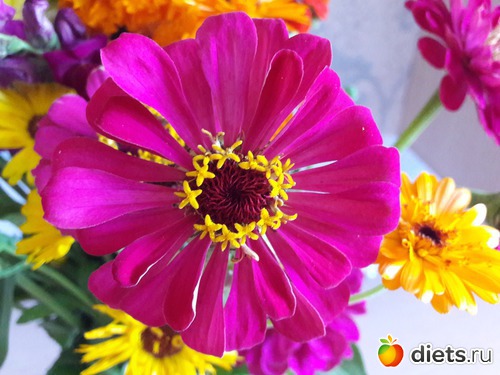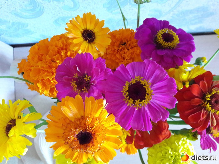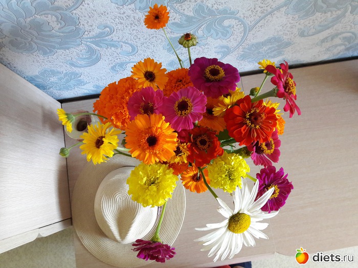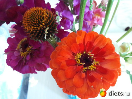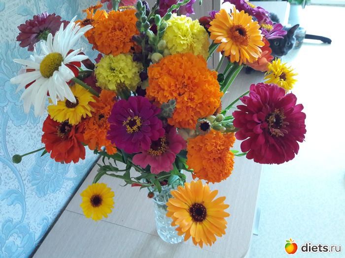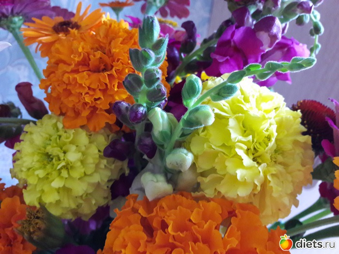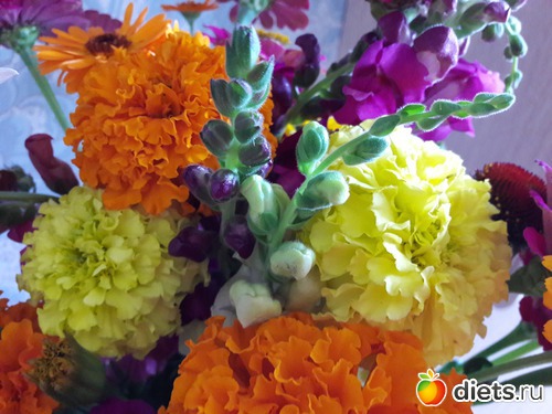 это ж просто феерия цвета, формы и красоты! причём именно садовой, таких букетов мне муж ещёникогда не дарил. Всегда покупал в магазине, заморские, а тут вдруг у бабушек купил. Всё то, на что я вчера с такой любовью смотрела и хотела домой унести)))