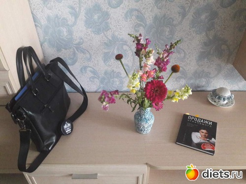 голубая вазочка не моя, я её по другой причине выбрала, она шикардосно гармонирует с обоями. с другой стороны... обои-то я выбирала