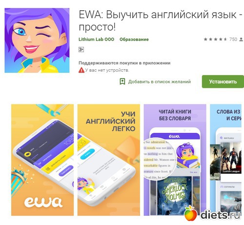 Кстати, поделюсь одним прикольным приложением. которое будет полезно при изучении Английского языка)) оно меня очень забавляет. называется ewa
