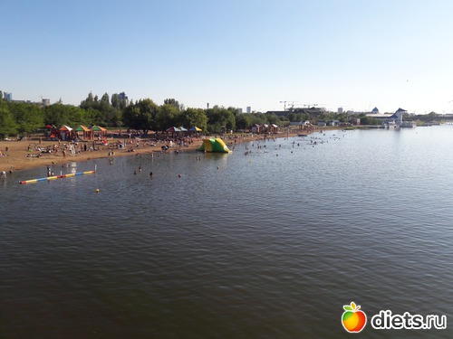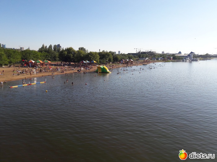 пляж, купаются и загорают люди, хотя Илюша уже в воду-то написил