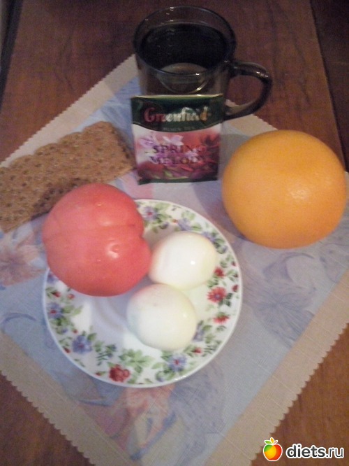 Ужин: 2 вареных яйца, салат, 1 апельсин или грейпфрут