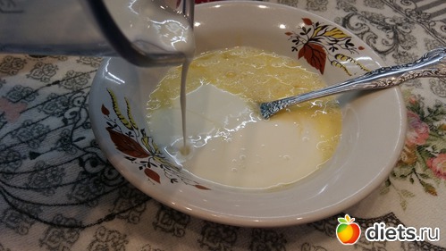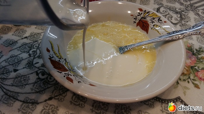 Добавляю 200 мл кефира, он должен быть комнатной температуры