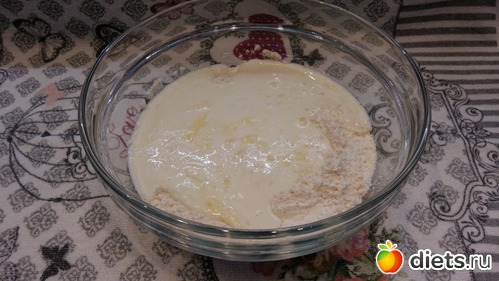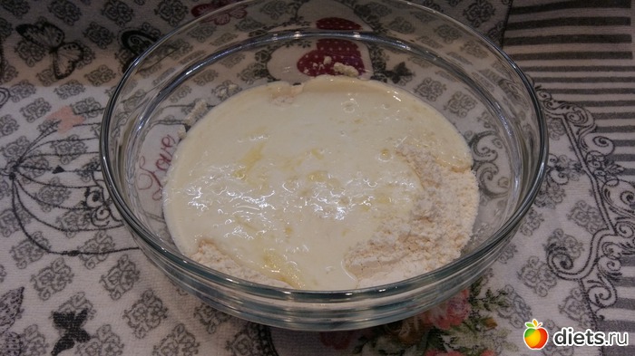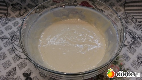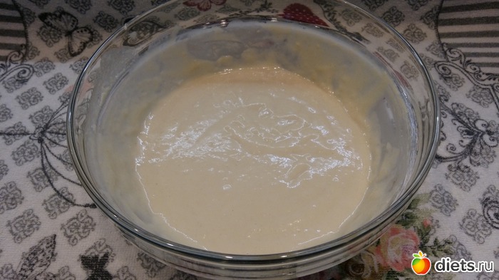 Хорошо перемешиваю, тесто чуть жиже чем на оладьи