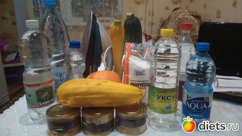 В общем, исхудала я на свою голову, а по большей части -- задницу, на 17 кг. Не было у меня столько ни огурцов, ни картошки, ни груш, но нашлись бутылки с водой, уксус, сахар, 3 консервы, тыква, 3 кабачка и утюг