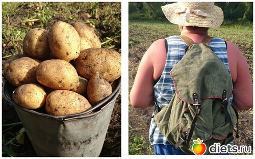 И вот такое ведро картошки я насыпала в свой рюкзачок и топала с ним домой уставшая, еле ноги волочившая.