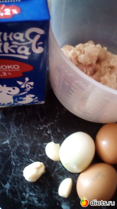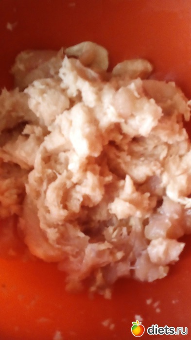 1. Готовим фарш: пропускаем через мясорубку куриное филе и луковицу. Можно-если это позволяет сделать блендер, то просто проблендерить. Добавляем яйца, специи, молоко, манку и вымешиваем до однородного состояния. Дадим постоять -минут 10, пусть манка набухнет!