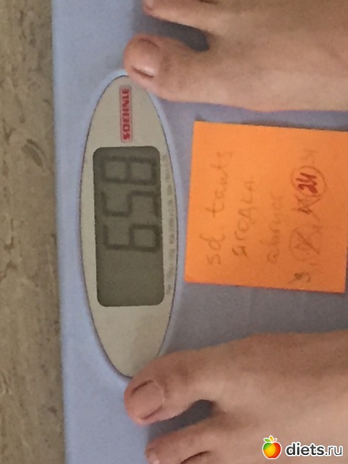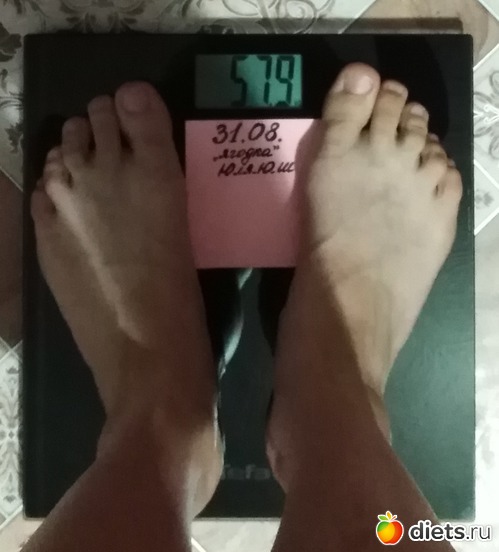 57,9 кг... Я честно два дня в зажор... Ещё спорт подключила... Вес в середине марафона был 56,4 кг... Могла бы дойти до цели в 55 кг к 1 сентября, как хотела, но увы и ах...