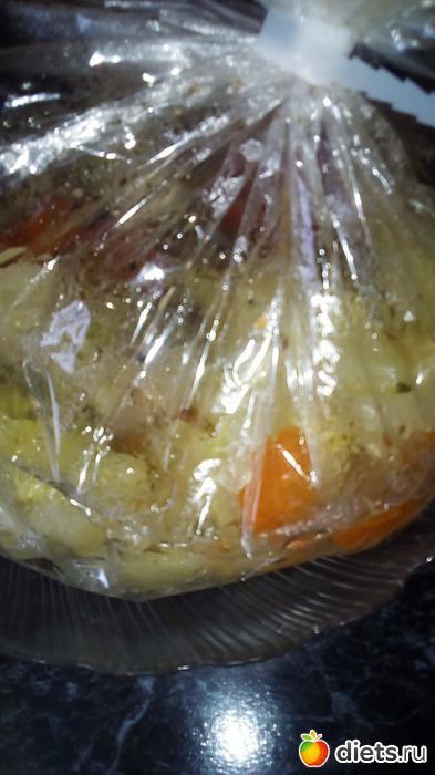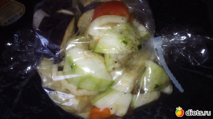 Сделайте в рукаве для запекания несколько проколов шпажкой. Отправляем овощи в разогретую до 180 градусов духовку, приблизительно на45- 50 минут.
