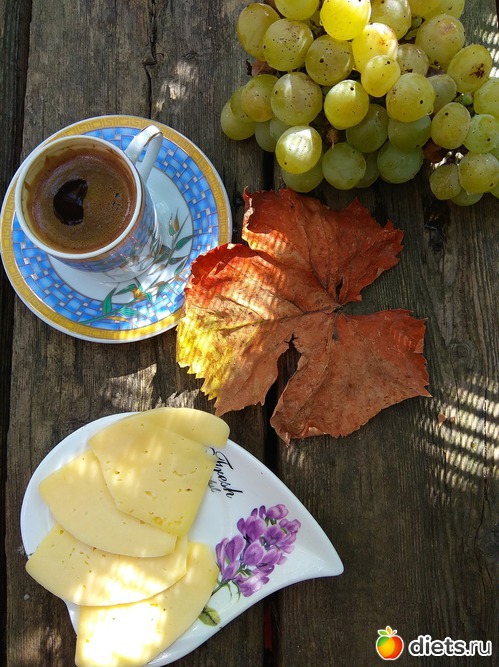 Мой завтрак с осенним листочком. У нас пока трудно найти листья не зеленого цвета. Поэтому только такой