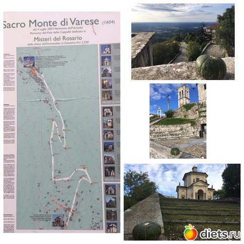 На фотках: схема маршрута (надо пройти 14 капелл), вид с самой верхней точки на город и на собор, ну и просто фотка одной из капелл (вроде 9-я)