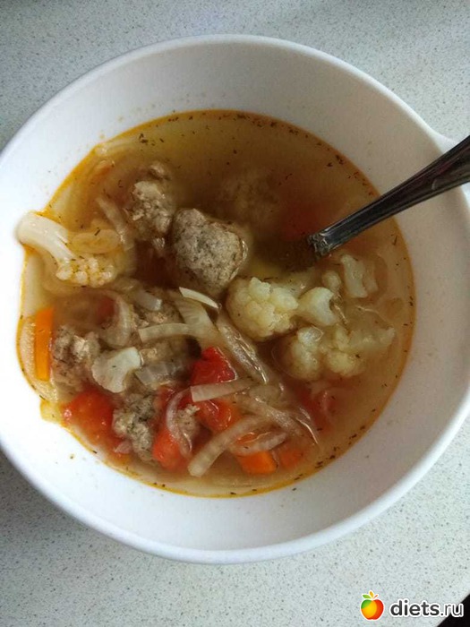 Суп с фрикадельками и цветной капустой.