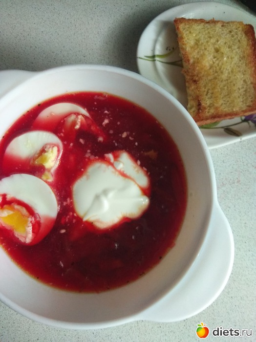 Свекольник, а к нему обязательно подсушенный хлеб натертый зубчиком чеснока.
