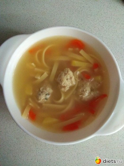 Вермишеливый с фрикадельками. В фарш для фрикаделек стала добавлять манку и теперь они просто наимегчайшие получаются.