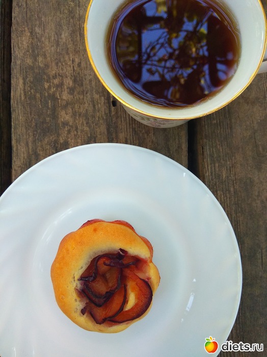 Кексы со сливовой розочкой. Розочка получилась не айс потому что для нее нужна более плотная слива, а у меня дома только переспелка осталась. Но на вкус