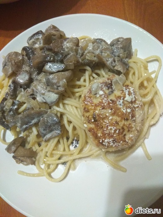 Курино-овсяные котлеты и грибы в сметане